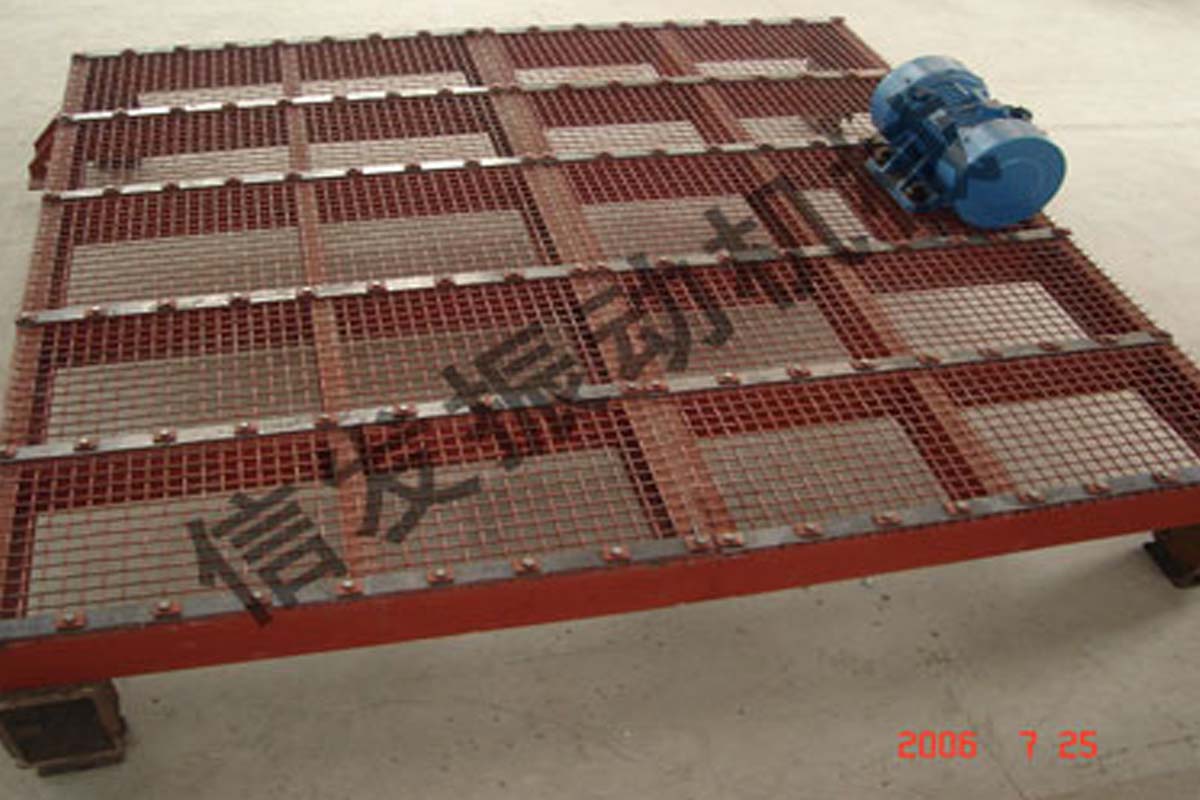 振動篦板是一個高頻振動的格柵,將其放置在礦槽上部,可防止因凍結或銹結成大團的屑狀或塊狀物料進入礦槽,否則大塊物料會在礦槽下部造成堵塞。由于格柵的高頻振動,在防止大塊物料進入礦槽的同時,屑狀、塊狀的正常粒度物料能迅速落入礦槽,不會在格柵上堆積,對一些粘結強度不大的結塊還能起松散、碎塊作用,是較理想的礦槽上部設備。振動篦板還可用于鑄件的落砂等其他用途。